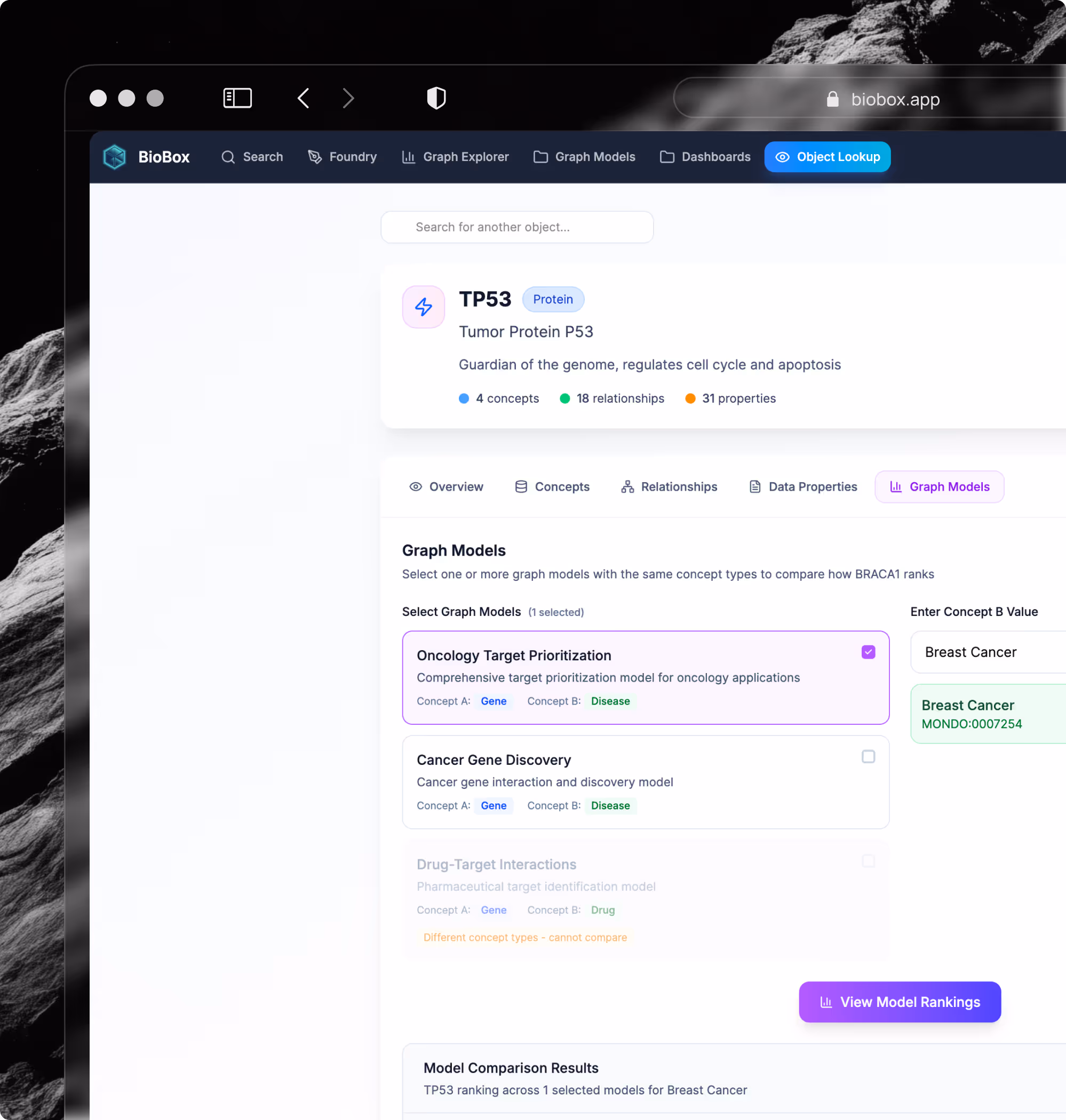 Every graph built is fully custom, using your an ontology developed by you and built around your data. The graphs conform to your science. BioBox graphs are data-driven and constructed using real-world experimental observations, not blind literature mining.