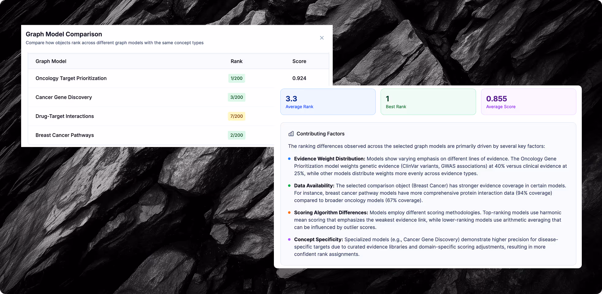 Every graph built is fully custom, using your an ontology developed by you and built around your data. The graphs conform to your science. BioBox graphs are data-driven and constructed using real-world experimental observations, not blind literature mining.